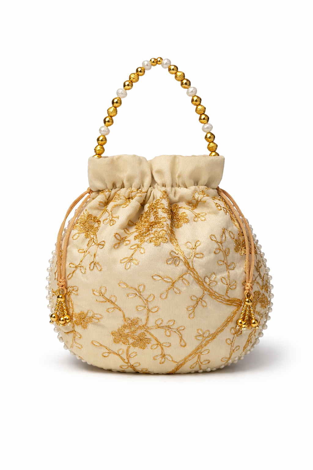 Ivory Gold Embroidered Potli
